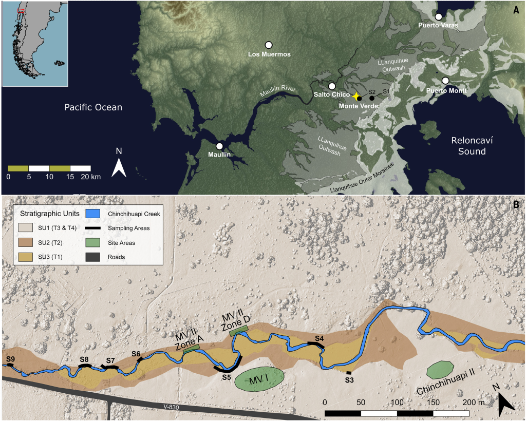 La nouvelle étude inverse la perspective. Selon ses auteurs, les matériaux datés à Monte Verde — bois, charbons — seraient plus anciens que le site lui-même. Transportés par les eaux, remaniés par les sédiments, ils auraient été redéposés dans des couches plus récentes, faussant ainsi les datations au radiocarbone¹. Une hypothèse classique en archéologie, connue sous le nom d’effet de « vieux bois »⁶, mais qui, appliquée ici, change tout.